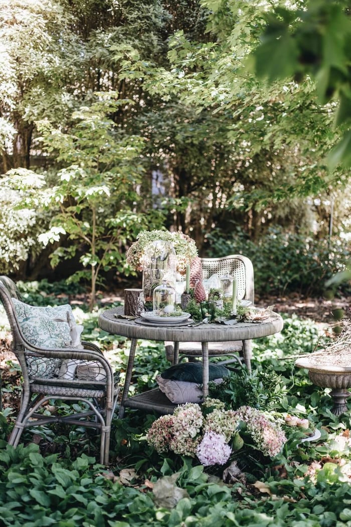 To establish structure and privacy, use box hedges, ivy, or hydrangeas planted in urns, terracotta pots, or stone planters. These create beautiful visual boundaries while keeping the space feeling lush and welcoming.