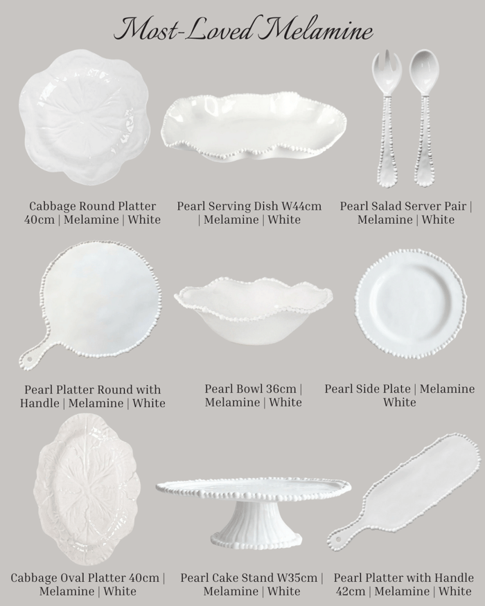 Yes — melamine is ideal for both alfresco and festive entertaining. Its lightweight, non-breakable design makes it perfect for outdoor dining, picnics, poolside meals, camping, and Christmas celebrations where effortless hosting is key. The elevated look of collections like our Pearl and Cabbage ranges adds a touch of elegance while remaining incredibly practical.
