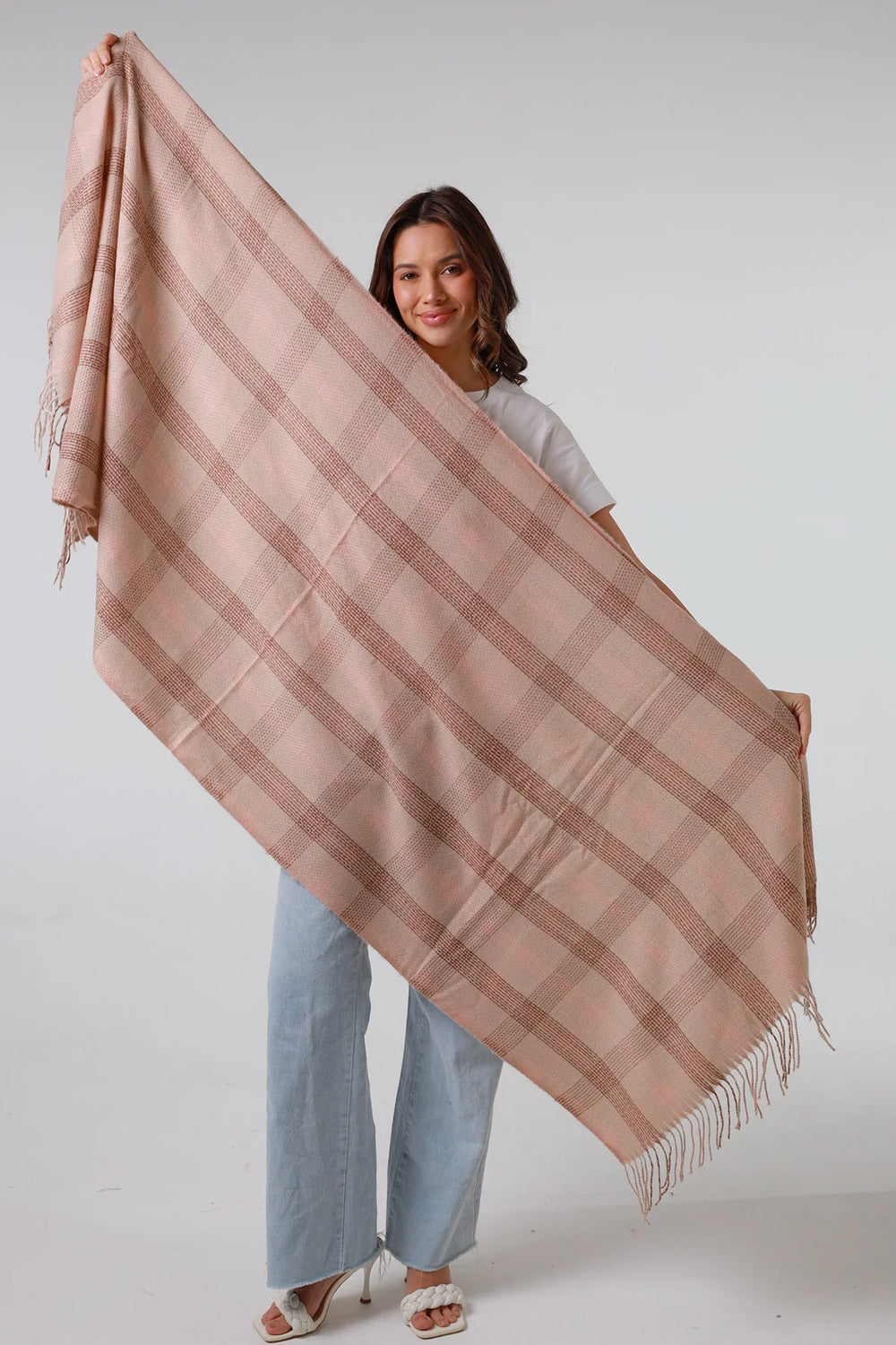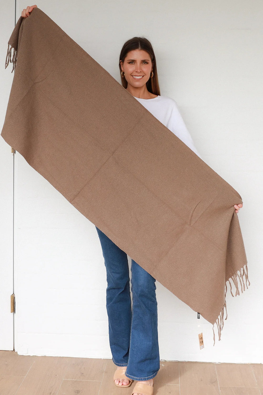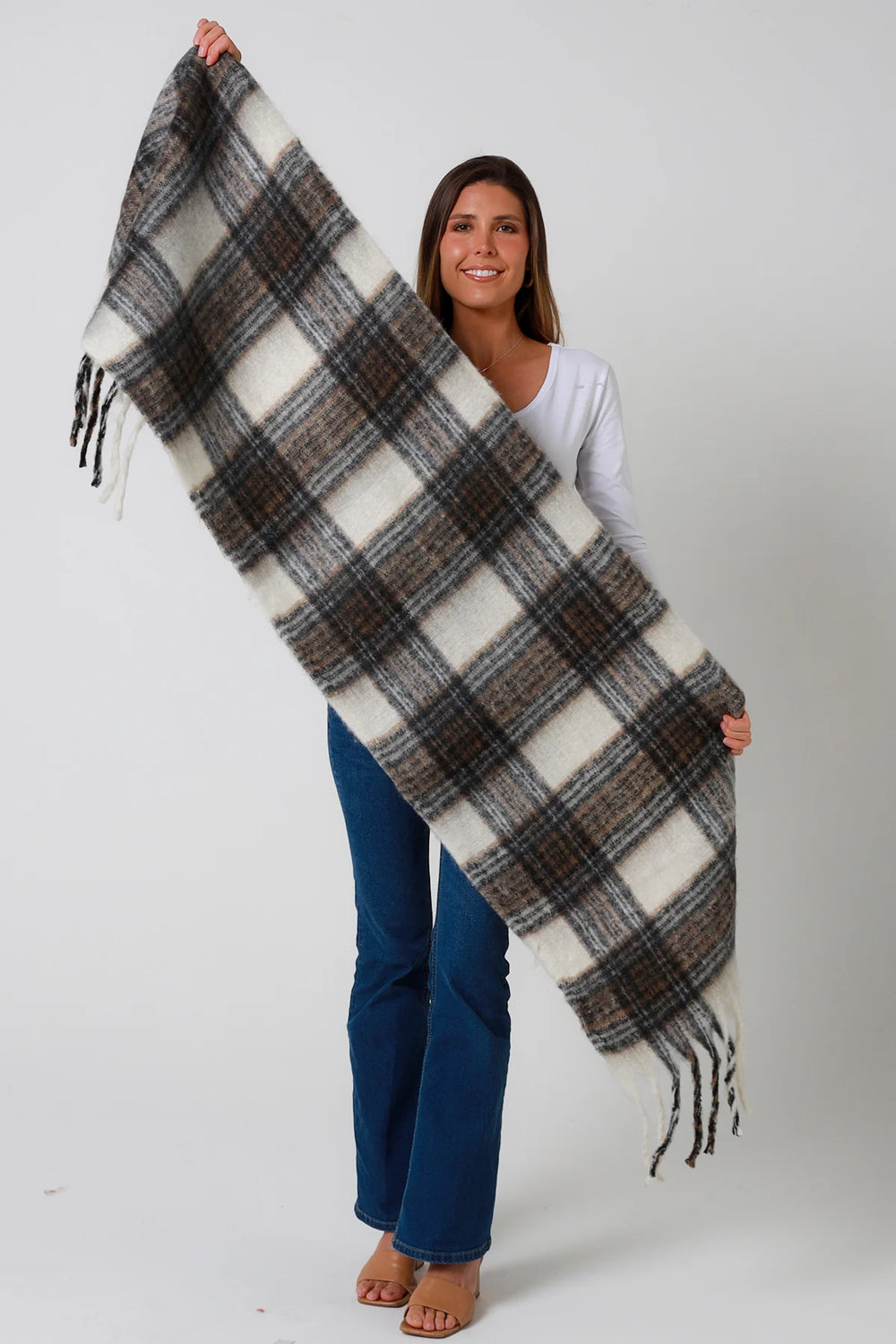 Style a neutral-toned scarf as a versatile accessory for both casual and evening looks.