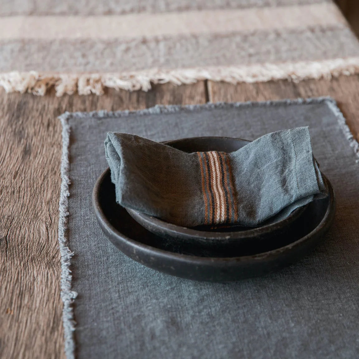 The Kea Napkin is woven on a soft river-coloured ground, featuring two distinct stripes for a refined yet versatile look. Elegant in its simplicity, it brings natural texture and understated sophistication to any tablescape. Crafted in Belgium by Libeco, this napkin reflects generations of expertise and a deep commitment to sustainability.