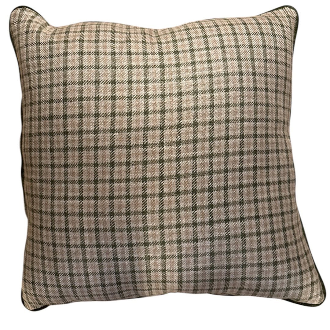 This beautifully tailored cushion cover is crafted from the classic Ian Mankin Nairn Check fabric, featuring a refined small-scale check in soft sage and neutral tones. The reverse is finished in premium Warwick Haven linen, offering a complementary texture and a high-end feel. Completed with a piped edge for structure and definition, this cushion adds timeless elegance to sofas, armchairs, and beds. Its subtle pattern and versatile palette make it ideal for layering with plains, larger-scale checks, or seasonal accents.