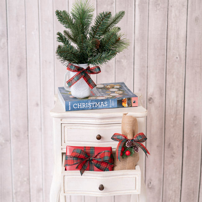 Bring timeless festive charm to your wrapping with our Tartan Plaid Fabric Ribbon in Green and Red. Featuring a traditional plaid pattern with cut edges, this ribbon is perfect for adding a classic touch to Christmas gifts, hampers, wreaths, and seasonal decorations.
