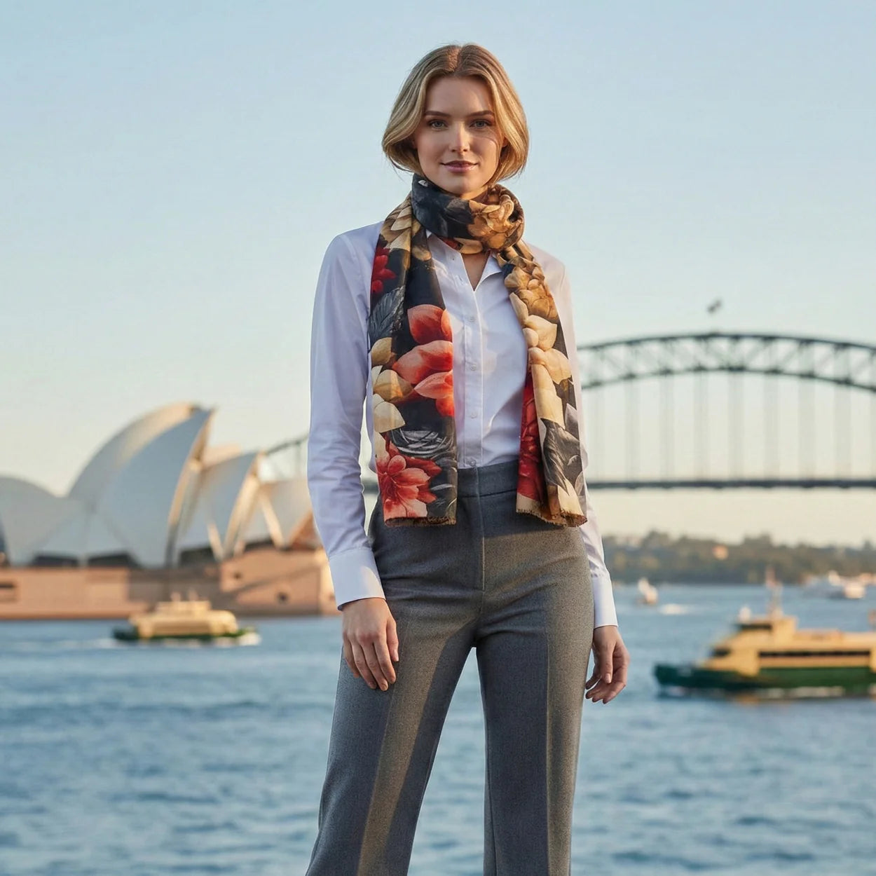 Fenna Floral Cashmere & Merino Wool Scarf – Lightweight Luxury Winter Wrap