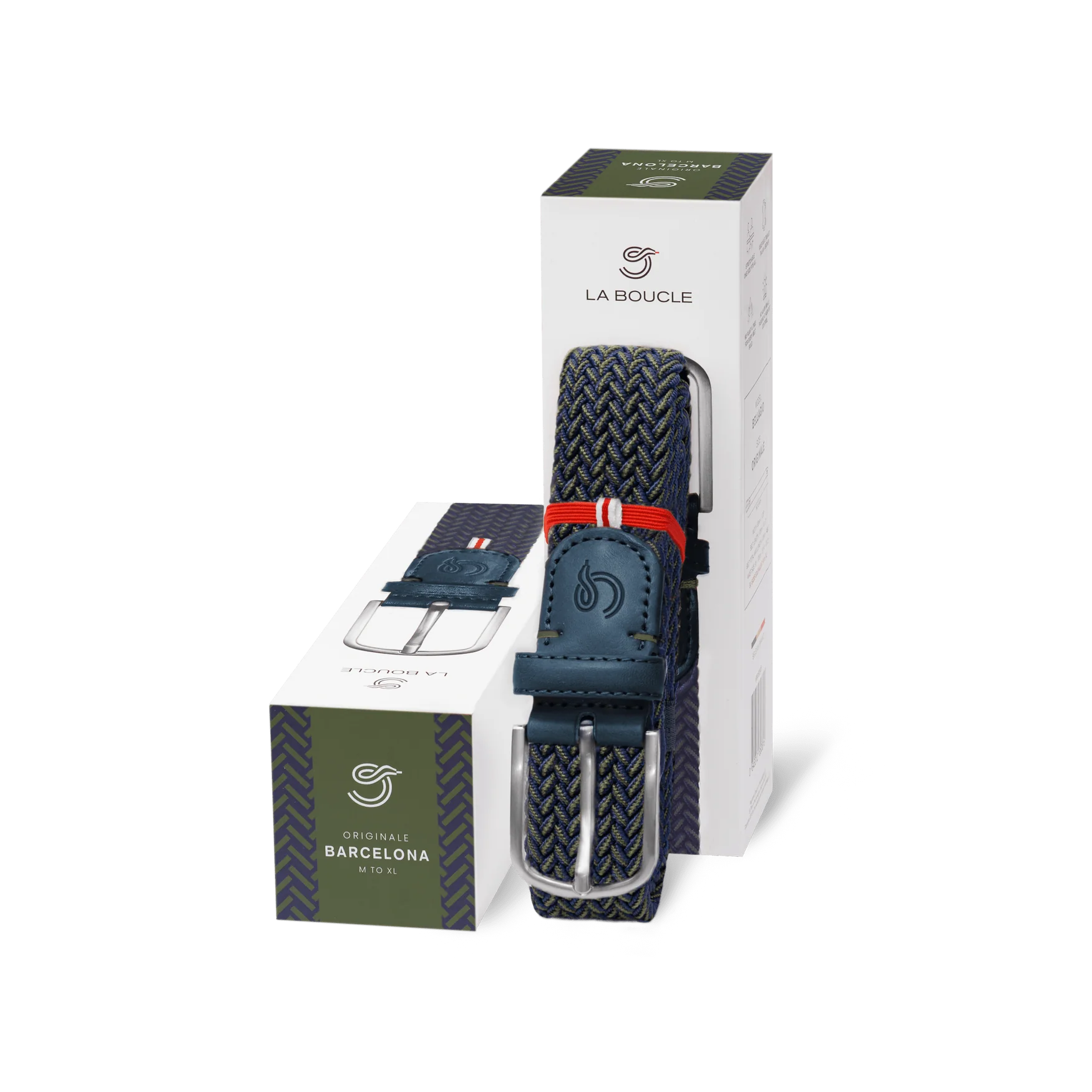 The La Boucle Belt in Barcelona is a vibrant braided design woven in rich blue and green tones, offering both style and exceptional comfort. Crafted with an elastic stretch construction, it adapts naturally to your shape for a flexible, secure fit throughout the day.