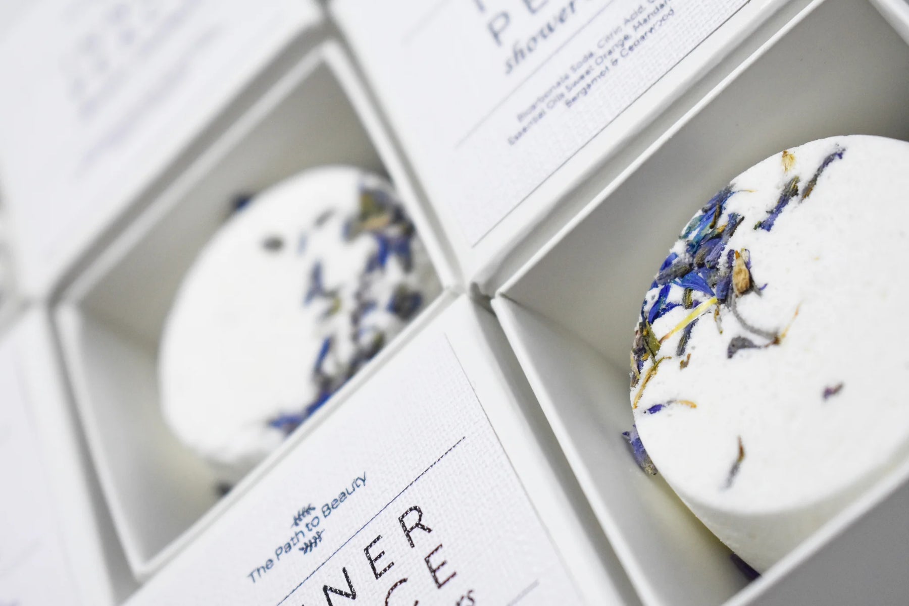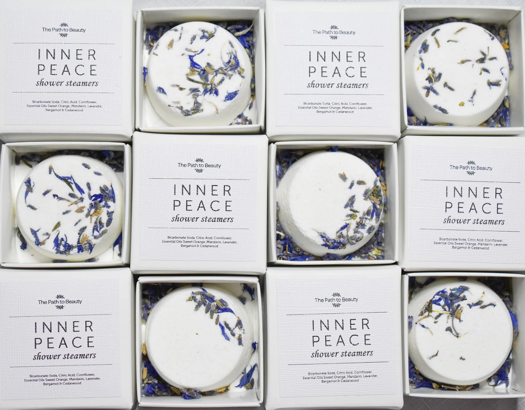 The Inner Peace Shower Steamer transforms your daily routine into a soothing, spa-like ritual. Designed for the shower, each steamer releases calming aromas as warm water and steam activate its natural ingredients. It can also be used as a traditional bath bomb, making it a versatile addition to your wellbeing routine.