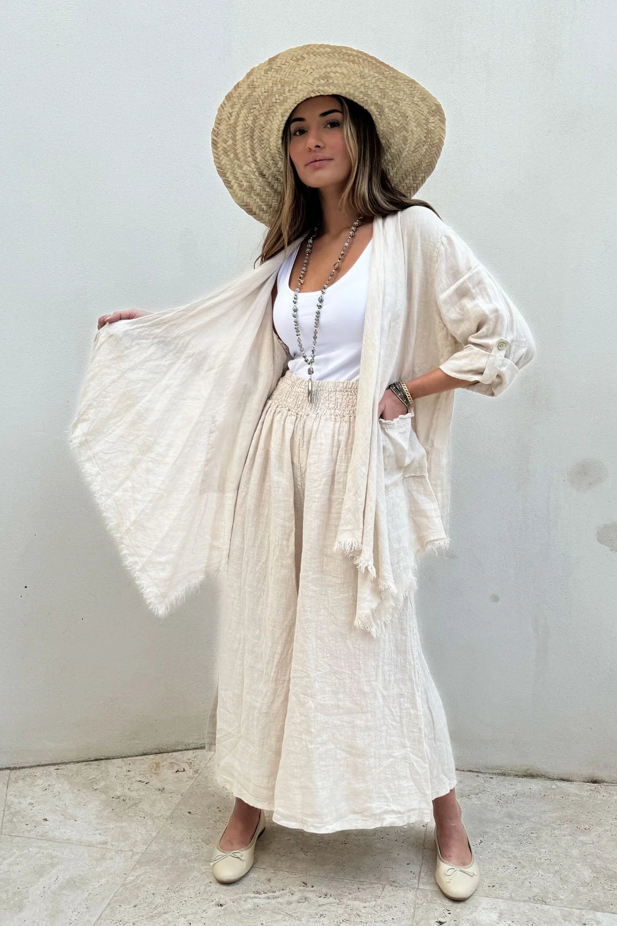 The Bypias Mallory Linen Trousers in Sand are an easy, relaxed essential designed for comfort and versatility. Crafted from breathable linen, these straight, wide-leg trousers feature a soft elasticated waistband that offers flexibility and ease of wear across multiple body shapes.