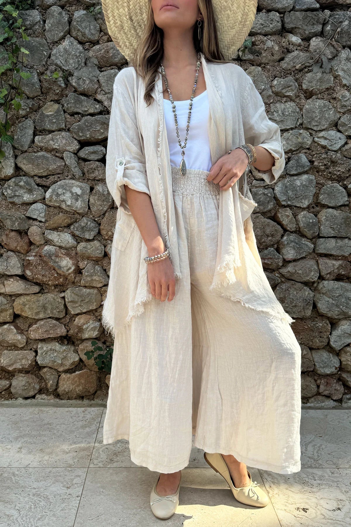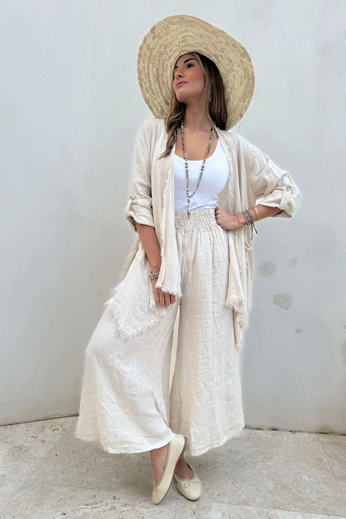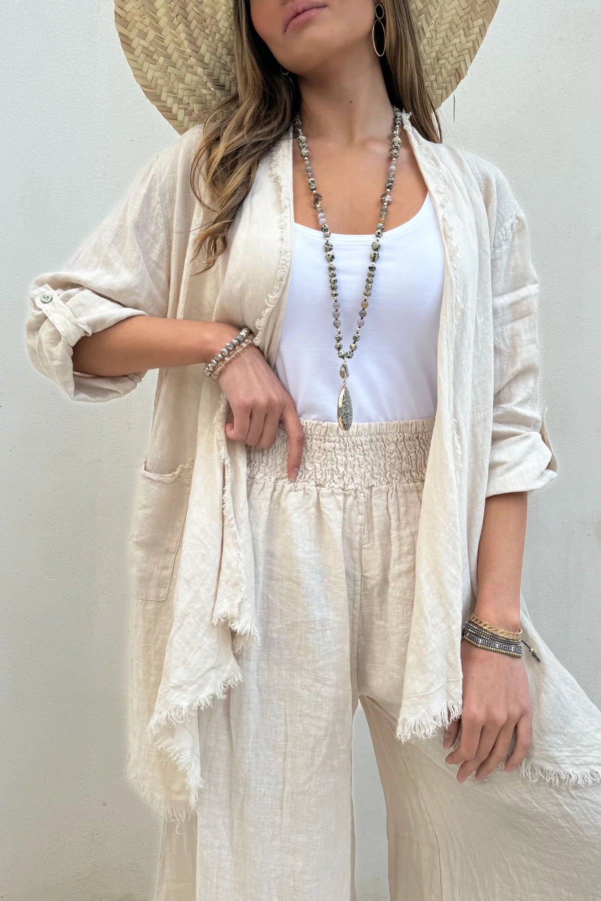 The neutral sand tone makes them endlessly wearable — perfect paired with linen shirts, knit tanks, or lightweight blouses. Whether styled casually with sandals or elevated with slides and jewellery, the Mallory trousers are a timeless addition to a warm-weather wardrobe.