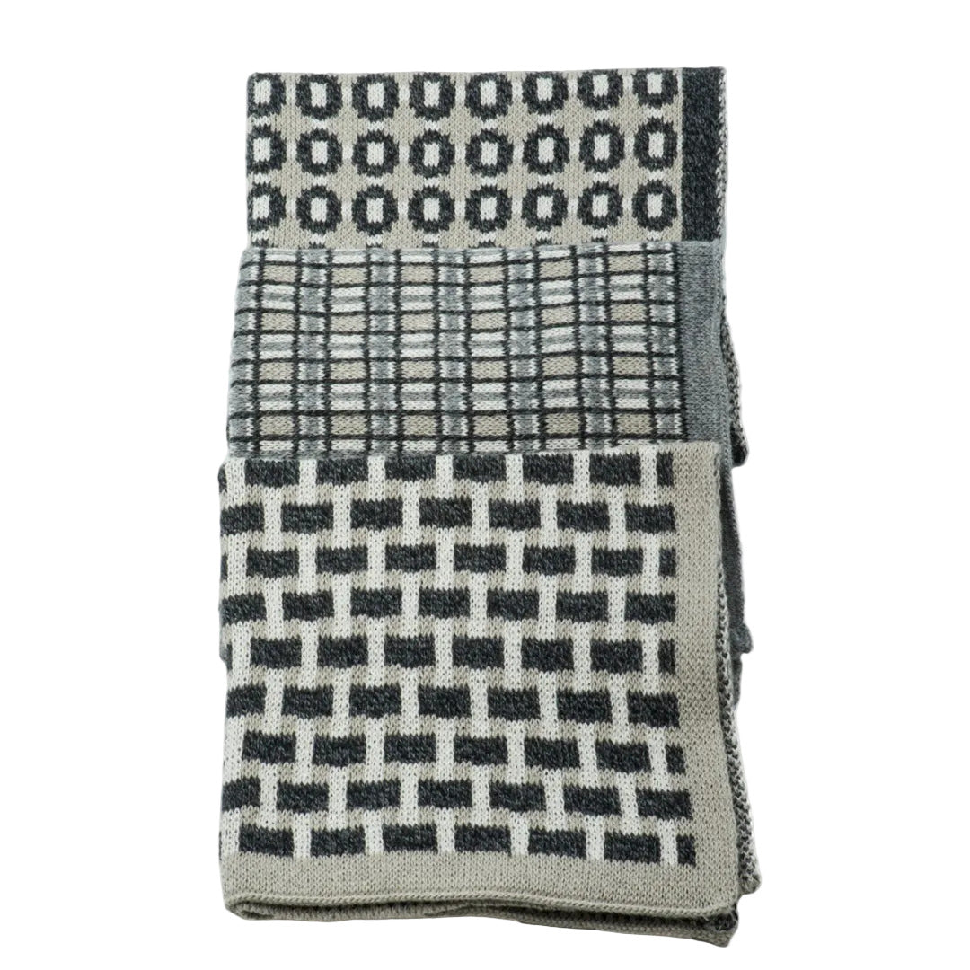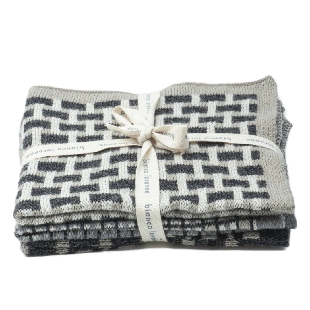 The Basento washcloths feature a set of three knitted designs that co-ordinate perfectly together in a melange of graphite tones. Perfect for using in the kitchen, as an alternative to a face cloth or for babies.