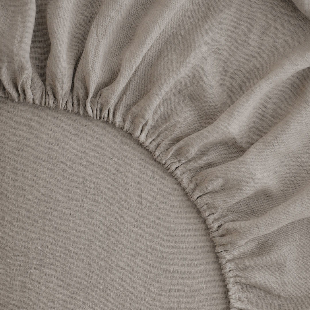 The Basix Linen Fitted Sheet in Kali is a sandy grey melange with a warm undertone.