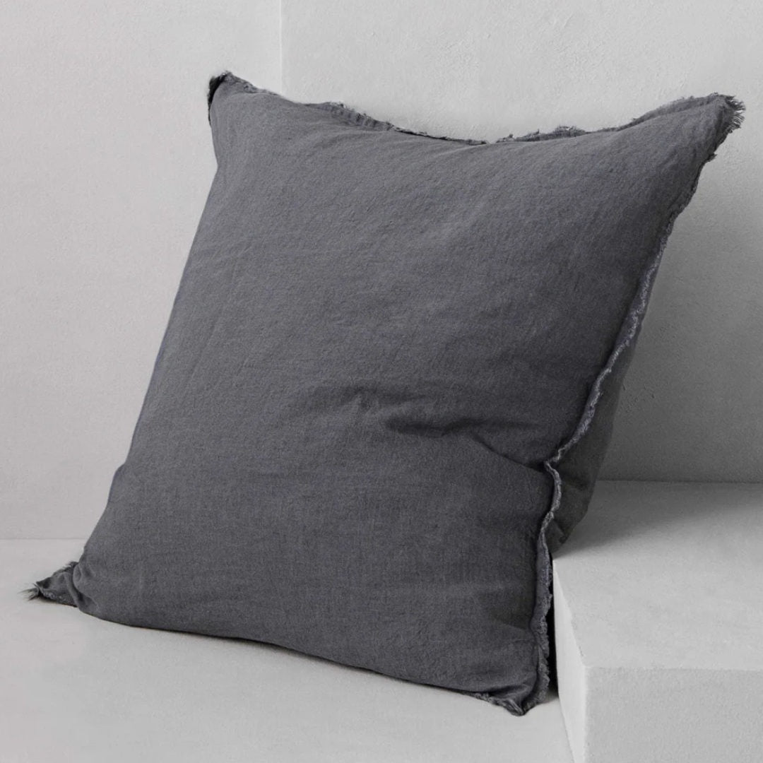 Our Flocca Linen Cushion in Tempest is a cool charcoal grey.