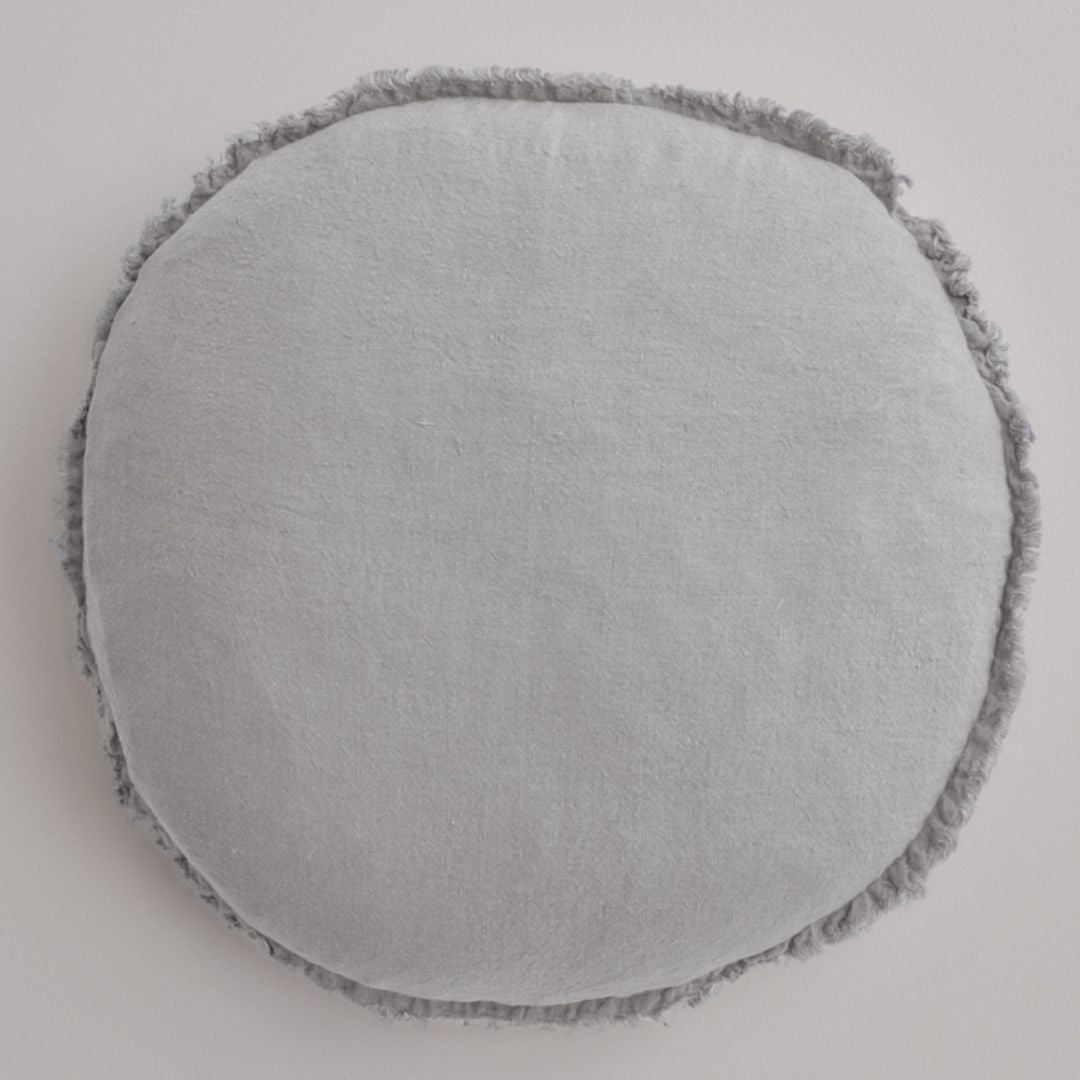 The Flocca Macaron Linen Pillow in Fog is a soft pale grey with subtle blue undertone.