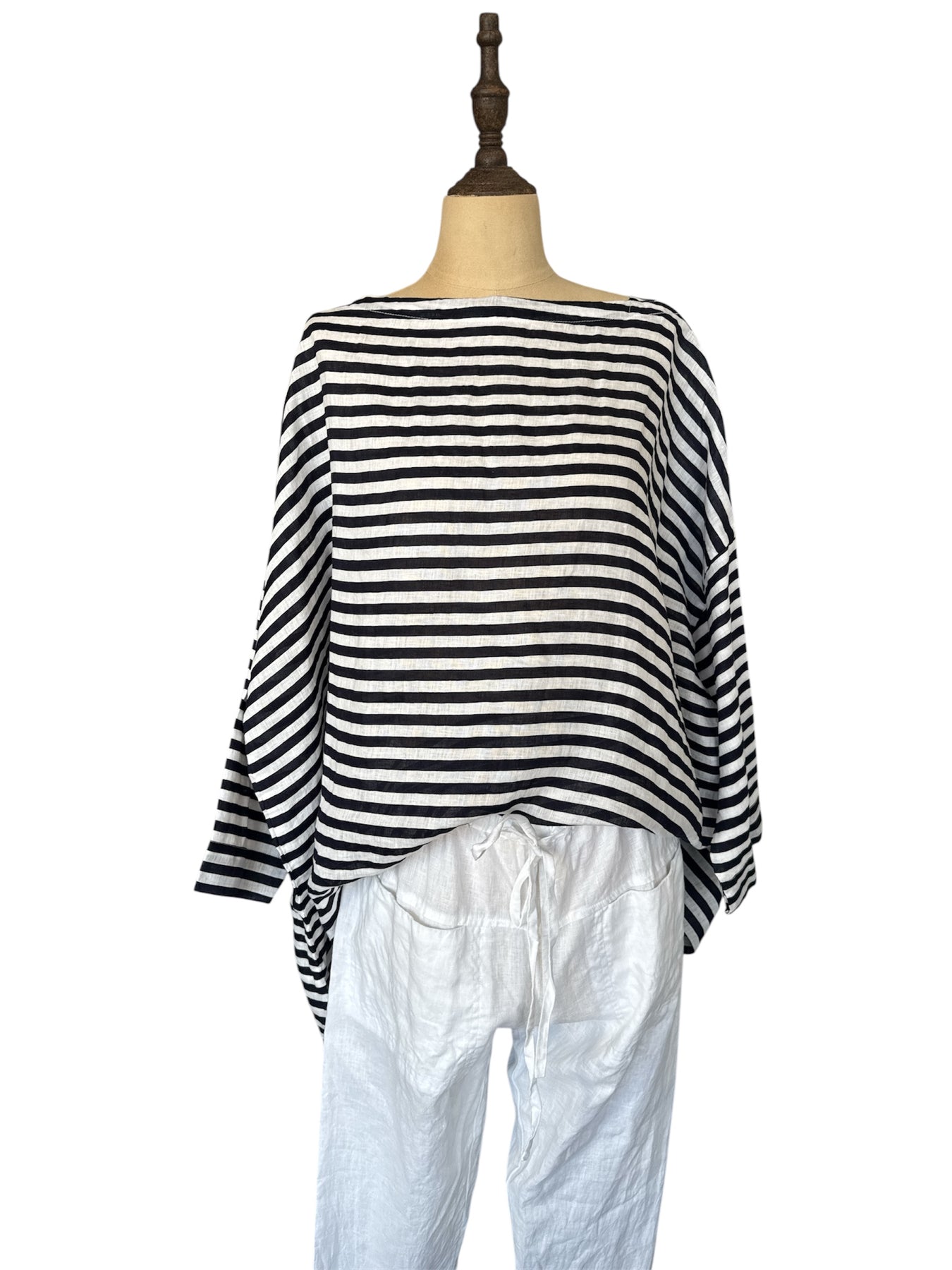 Its classic navy stripe pattern adds timeless appeal, making it easy to pair with linen pants, jeans, or shorts. Ethically made in Bali and designed in Australia, the Avril Top reflects Frockk’s commitment to sustainable, slow fashion — combining natural fibres, quality craftsmanship, and everyday wearability.
