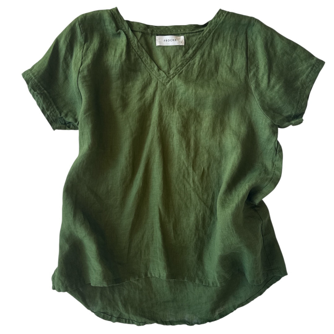 The Ellie V Neck Top in Moss by Frockk is a beautifully relaxed style that embodies effortless elegance. Crafted from 100% European flax linen, it features a soft, natural drape and breathable texture — perfect for warm-weather dressing or layering throughout the seasons.