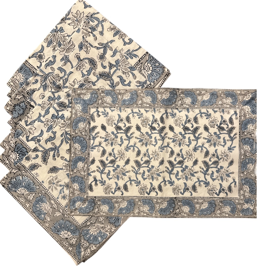 Jaipur Cotton Placemat & Napkin Set (6) | Blue/Grey