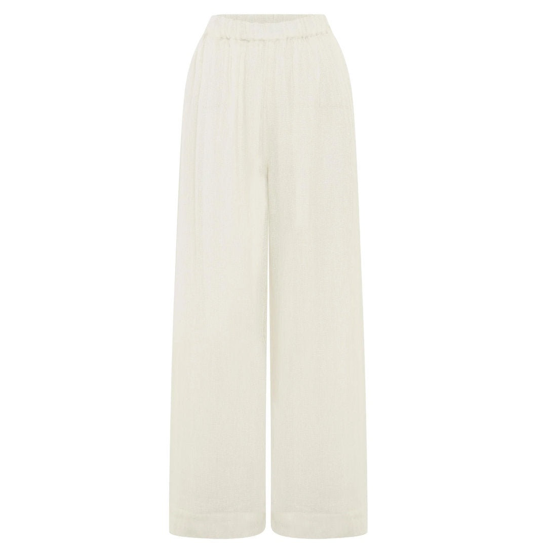 • Relaxed wide-leg silhouette • Comfortable elastic waistband • Lightweight linen blend in white