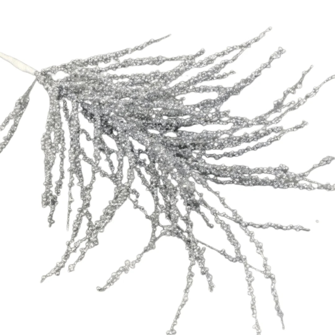 A glamorous glittery silver spray, perfect for a luxe Christmas theme.