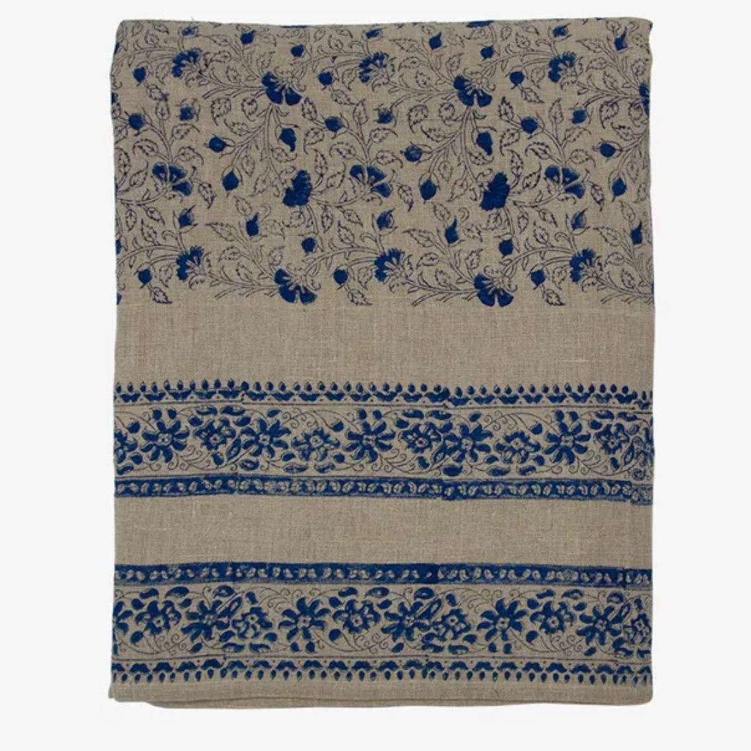 The Sofia Floral Azure Tablecloth brings a sense of quiet, understated beauty to your everyday dining. Crafted from weighty natural linen, each piece is printed using a traditional Indian hand-blocking technique. Every floral motif is carefully stamped by hand, creating gentle variations in tone and placement—subtle marks of true craftsmanship that make each tablecloth unique. Its soft azure and white palette lends a fresh, elegant charm to both casual meals and relaxed entertaining.