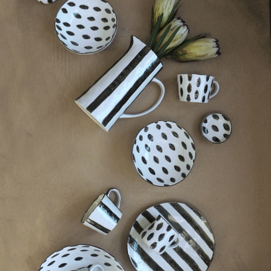 This stunning Zanzibar porcelain bowl is hand made and hand painted, inspired by the colours of Zanzibar. This bowl features a reactive finish making every piece truly unique. It would look beautiful when styled amongst British Colonial tableware and brings a tribal and fun feel to any table setting. The Zanzibar bowl is perfect as a small bowl for side dishes or a breakfast bowl.