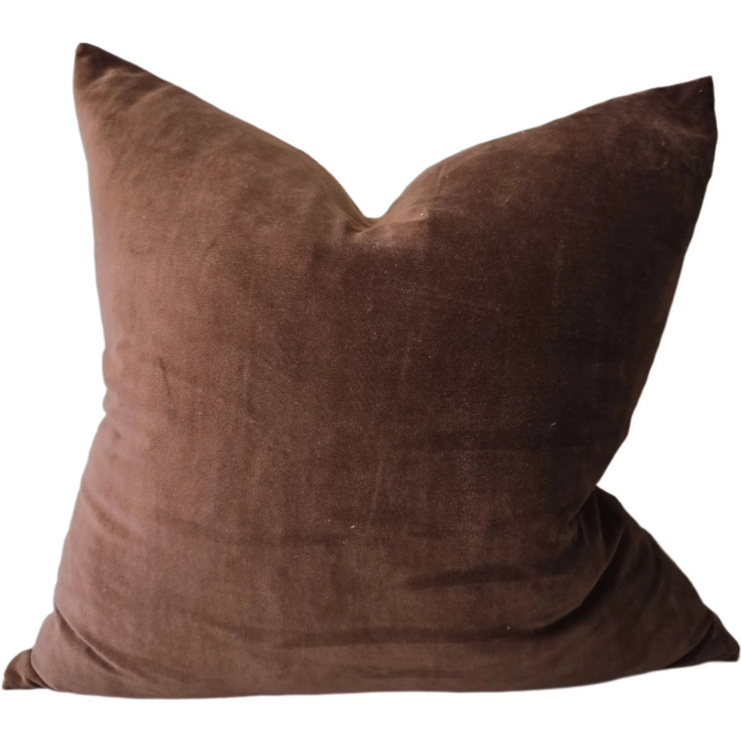 Fontainebleu Velvet & French Linen Cushion Cover | Pinecone Brown | 55x55cm