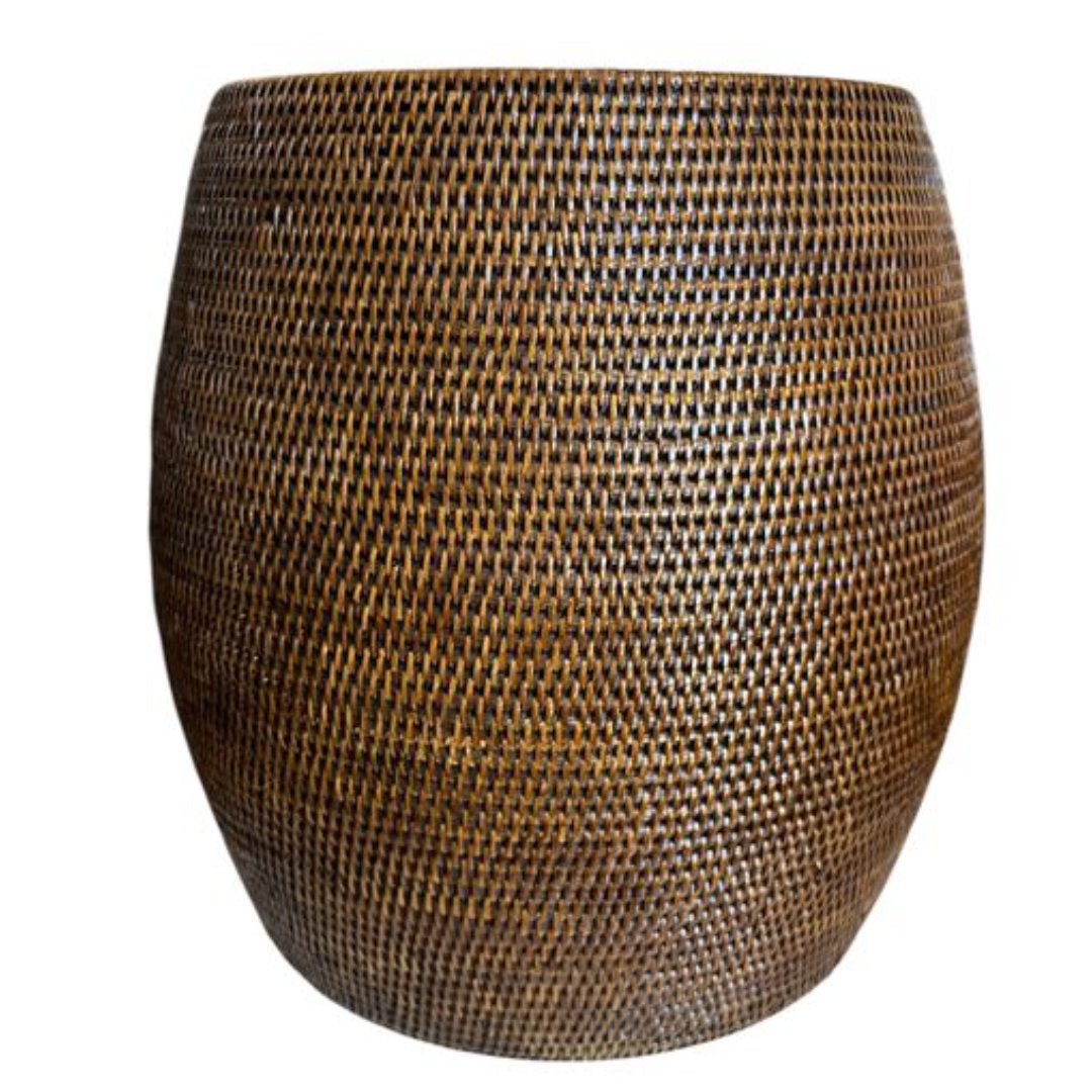 Rattan Drum Side Table | Antique Brown