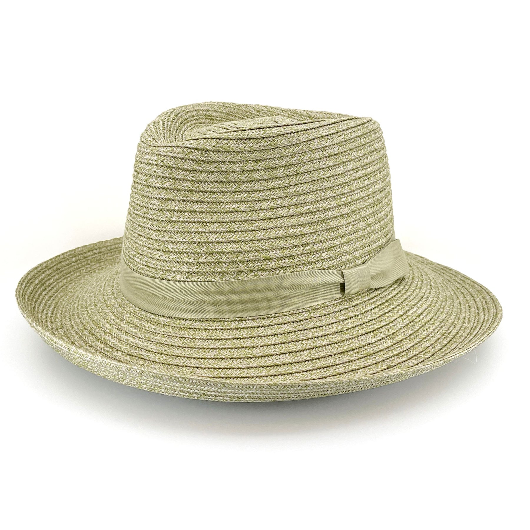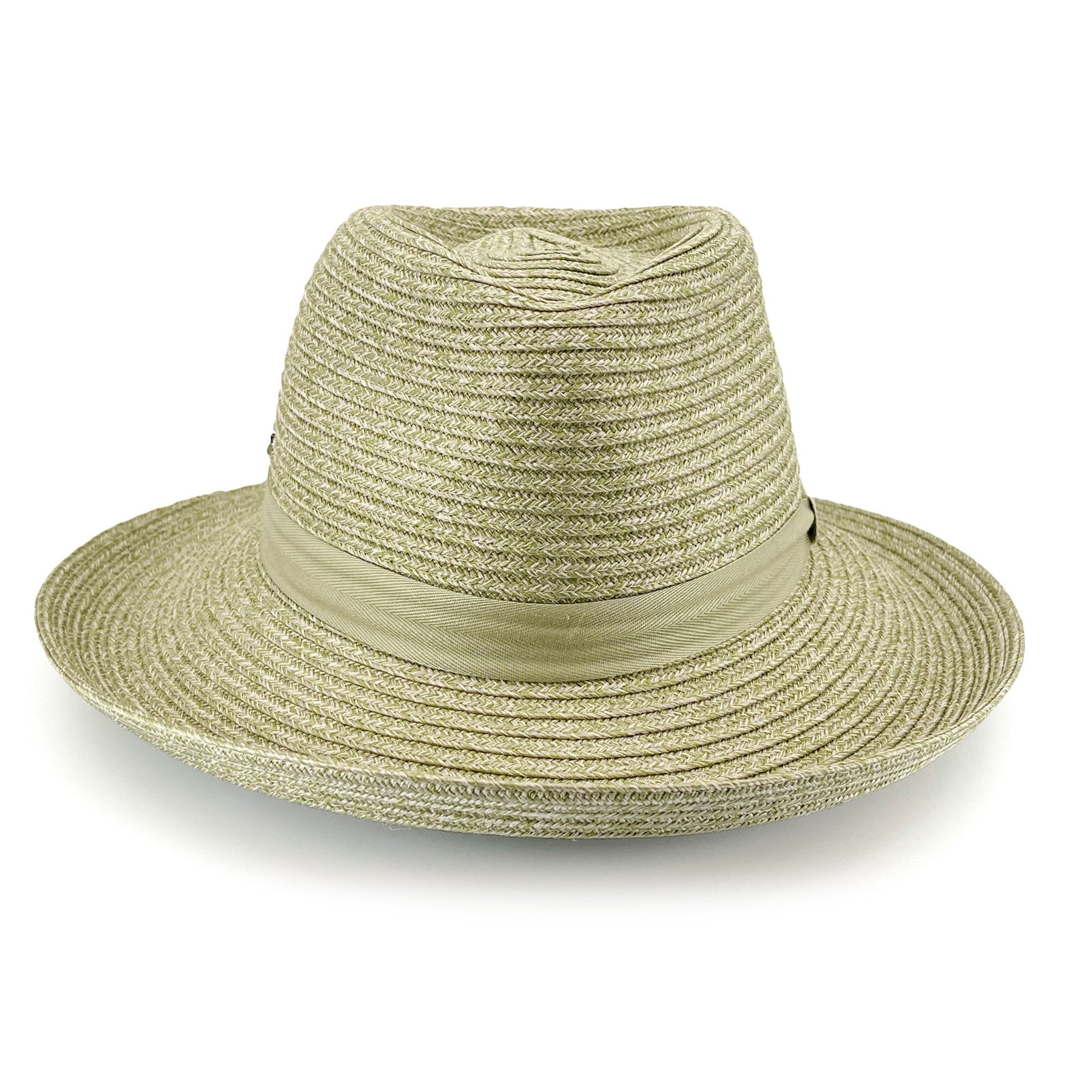 Infused with a spirit of outdoor adventure, the Banksia Fedora blends carefree charm with refined sun-smart design. Finished in an earthy green hue with a matching tonal ribbon, this distinctive reverse trilby silhouette features a brim gently flicked up at the front, adding a playful yet polished edge.