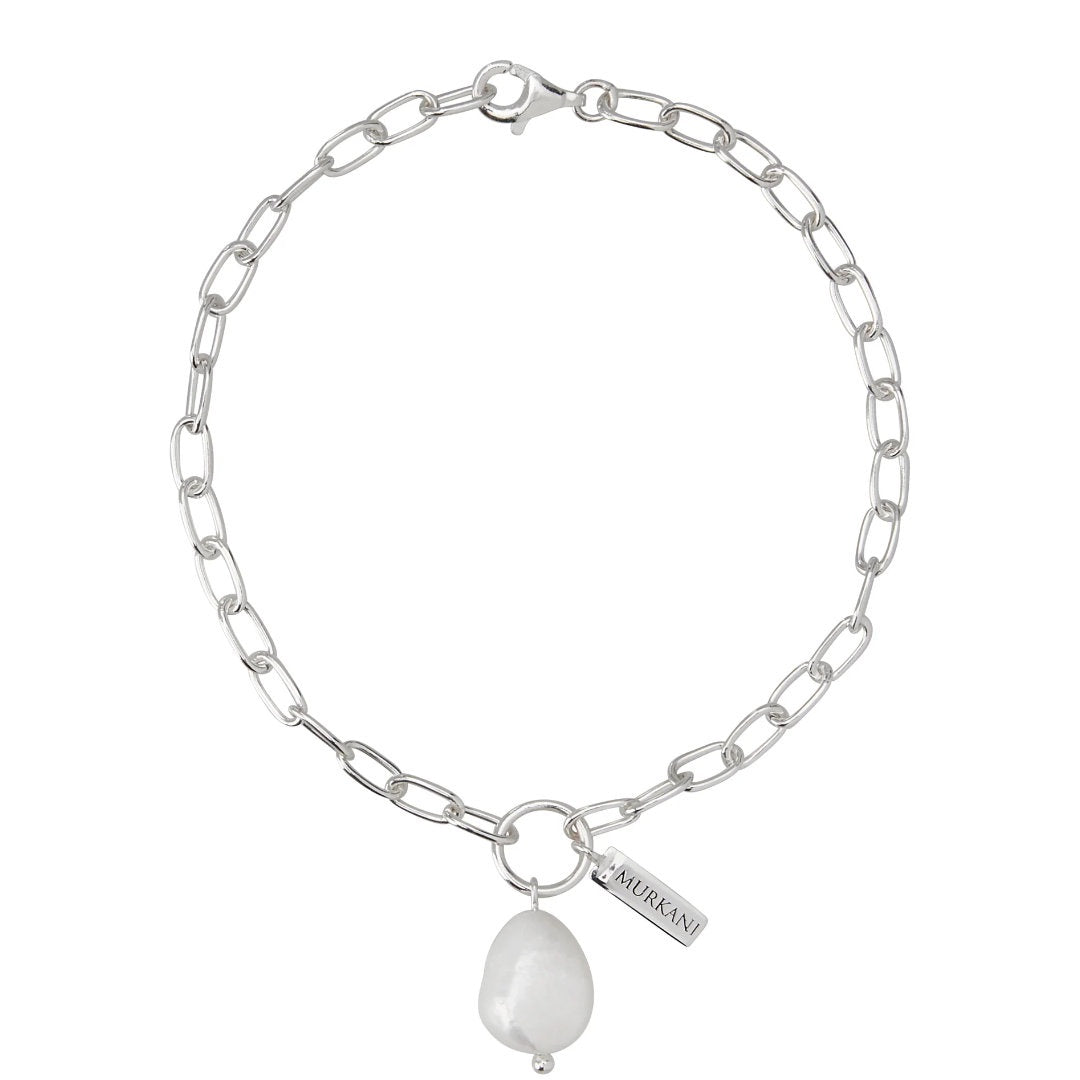 Elevate your jewellery layering with the Aphrodite Goddess Pearl Drop Bracelet. Handcrafted in sterling silver, this refined piece features a contemporary rectangle-style chain finished with a luminous baroque pearl — celebrating organic beauty and modern elegance.
