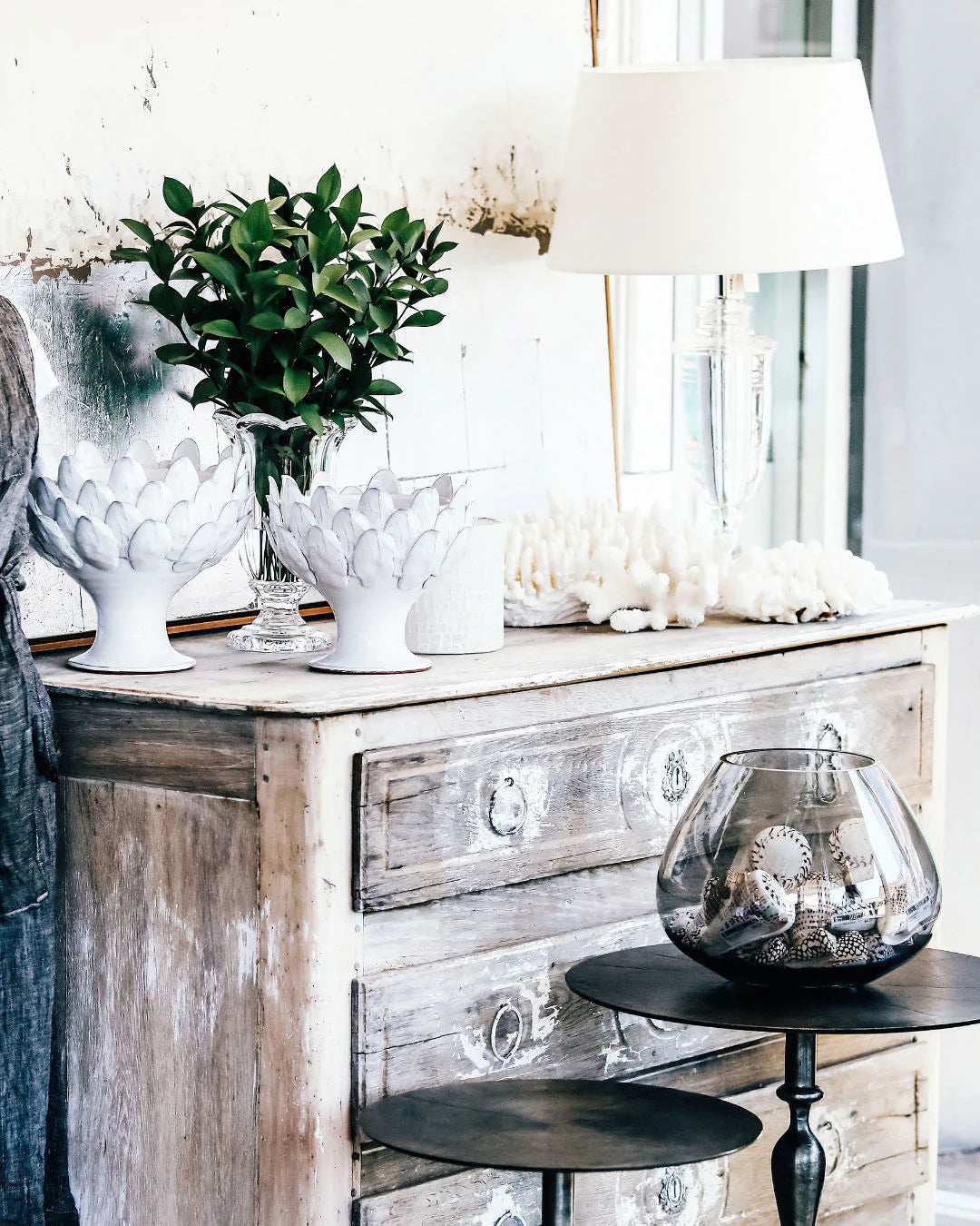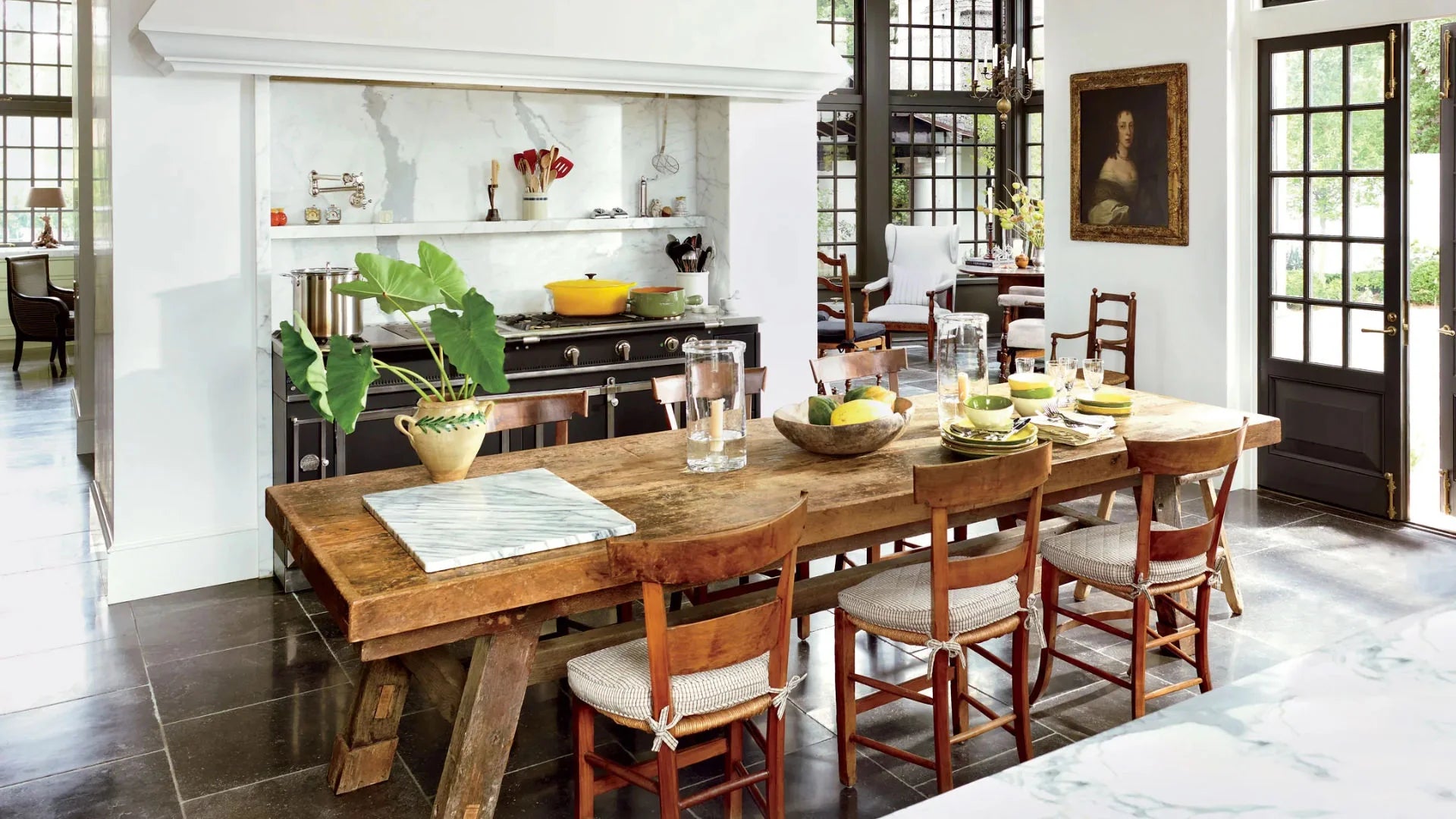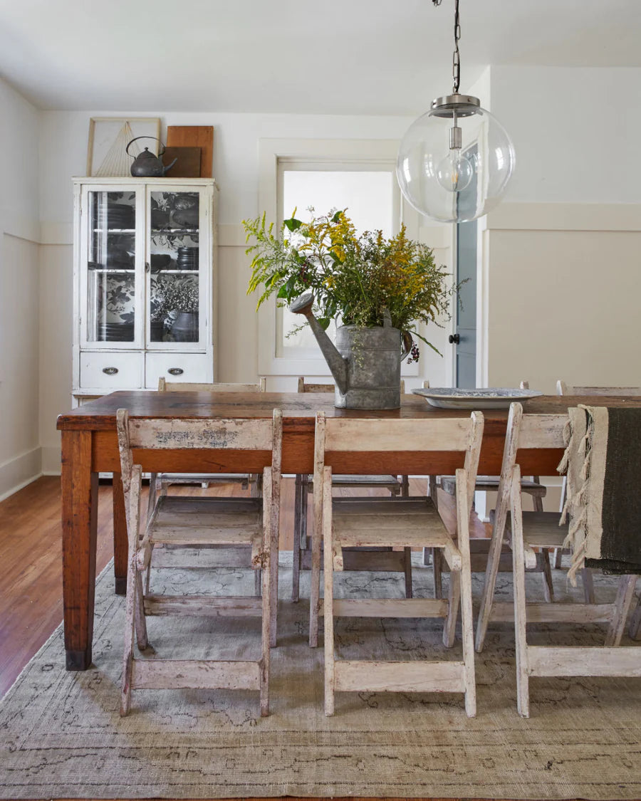 Blending contemporary elements with timeworn furniture and decor, one of its most appealing features is the intentional inclusion of mismatched textures and patterns, which bring life and visual interest to the interior.