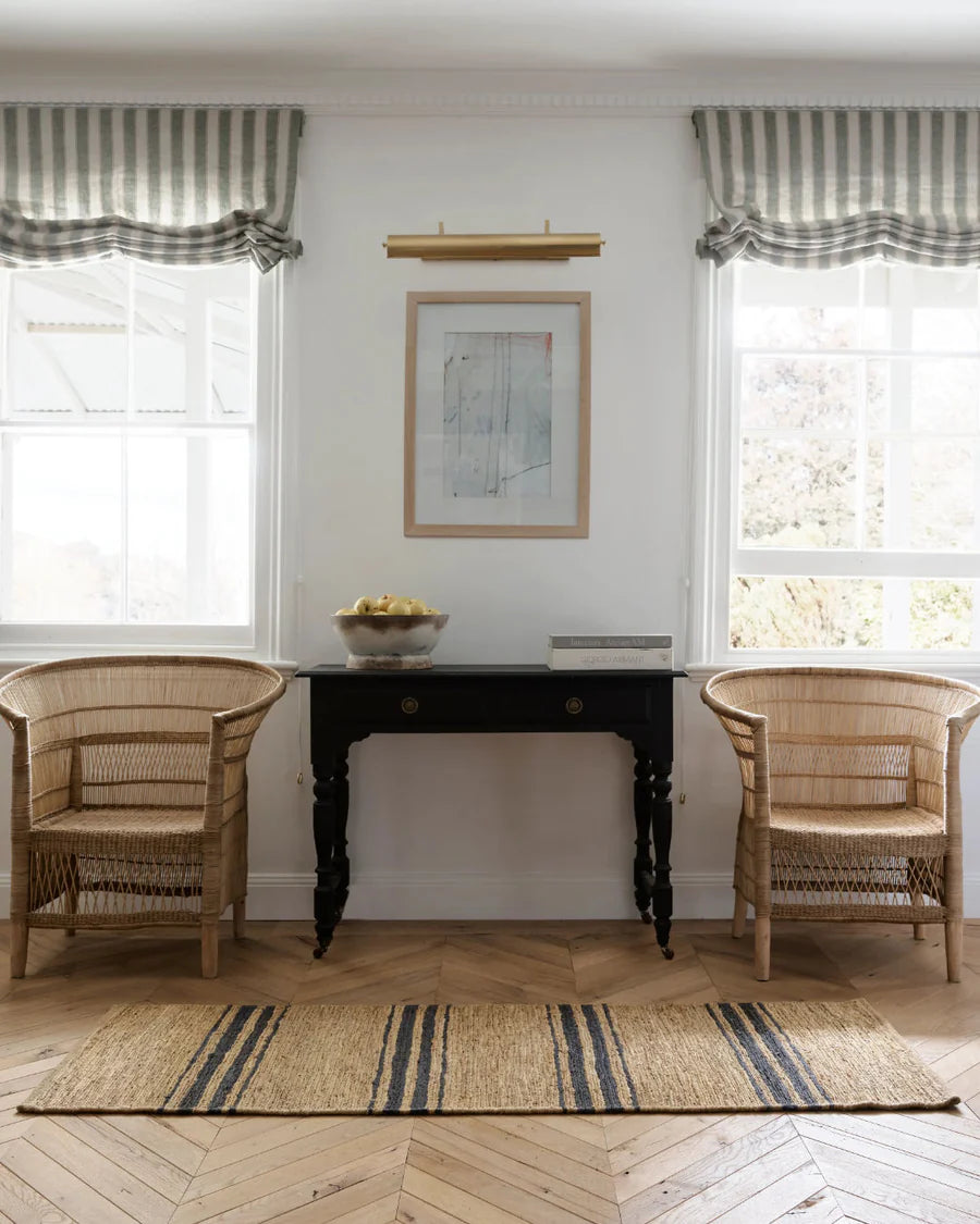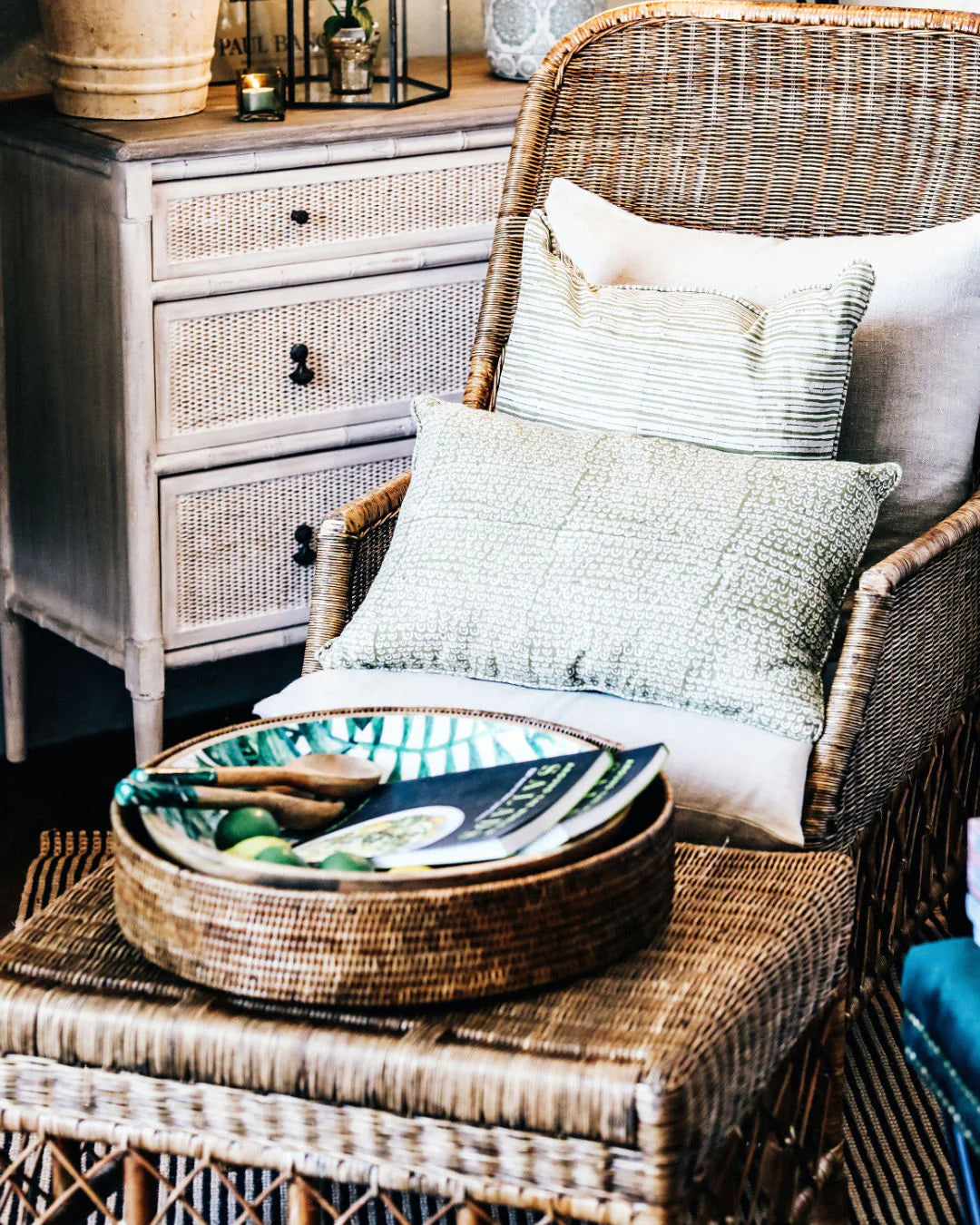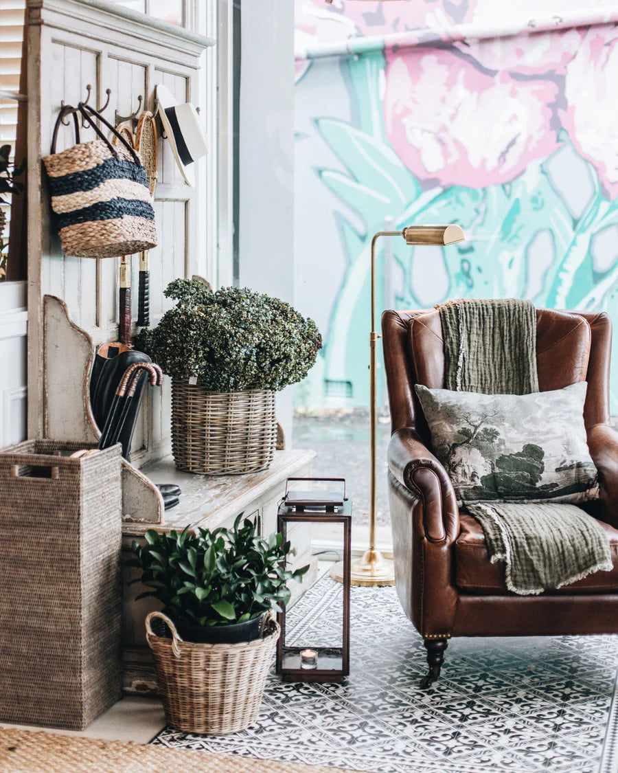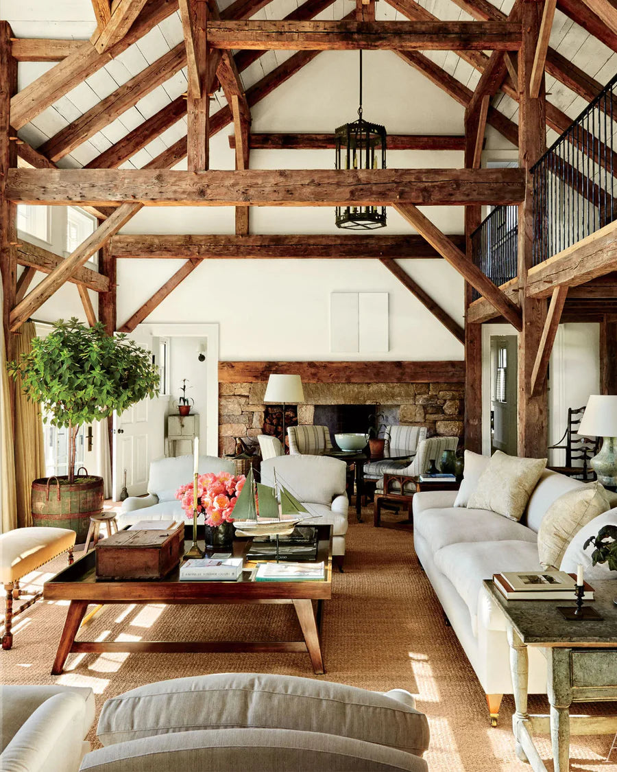 Blending contemporary elements with timeworn furniture and decor, one of its most appealing features is the intentional inclusion of mismatched textures and patterns, which bring life and visual interest to the interior.