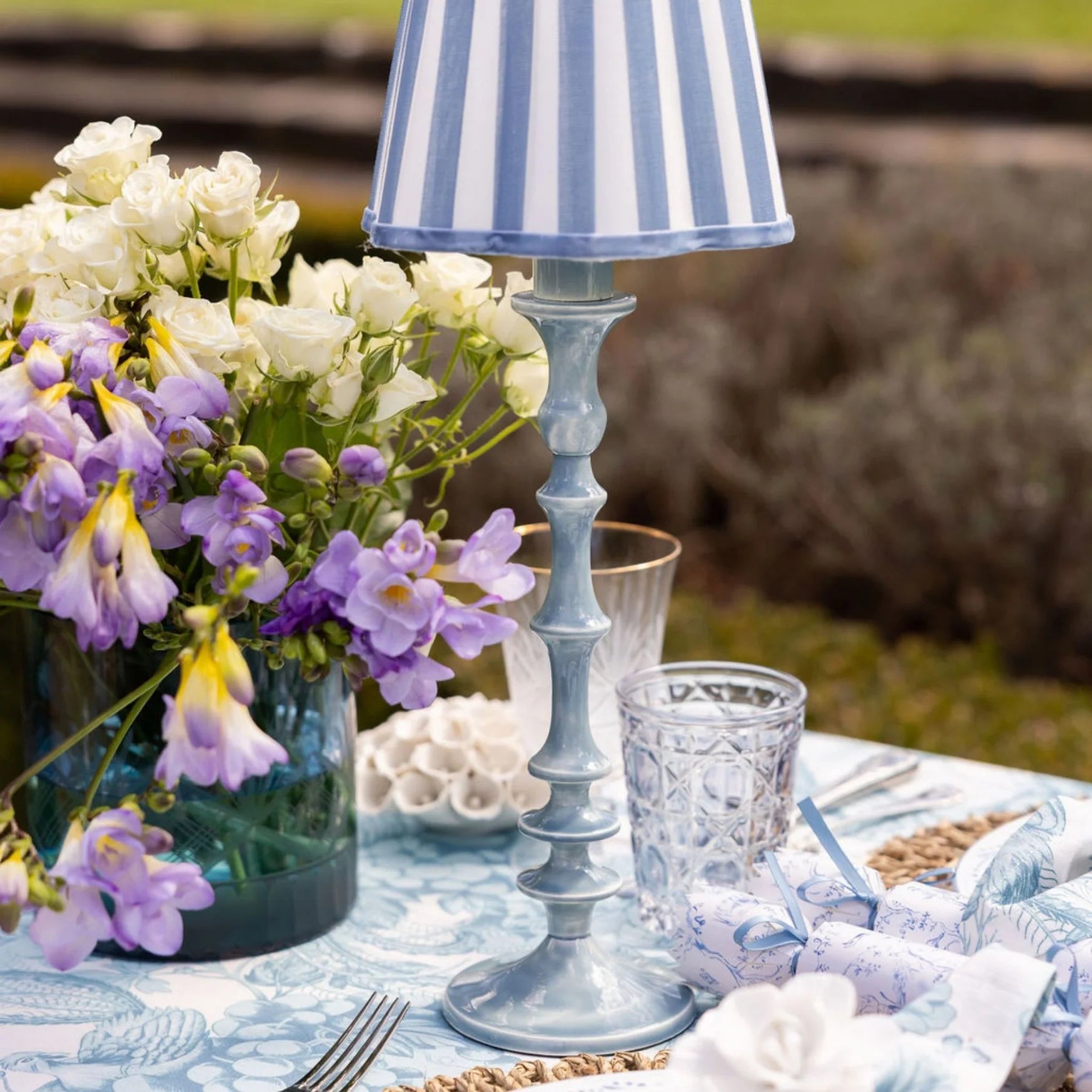 The Ocean Blue Lamp Base combines timeless elegance with everyday practicality. Crafted from durable metal but finished to emulate the refined look of ceramic, it brings a serene coastal-inspired touch to any interior. Completely cordless, it includes a rechargeable globe offering 15–20 hours of warm ambient light—perfect for bedside tables, dining spaces, consoles, and corners where power points are limited.