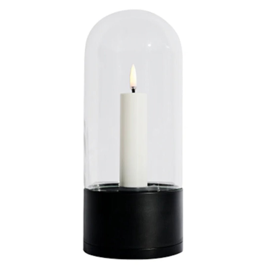 Outdoor Lantern with Flameless Candle | Glass Dome | Weather Resistant | Matte Black
